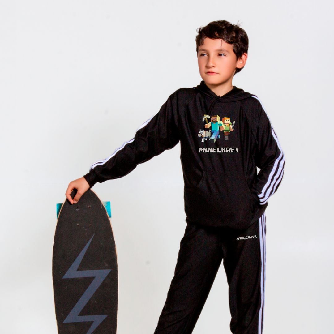 👕 Incluye: Hoodie con diseño exclusivo de Minecraft + sudadera a juego y una tula GRATIS para sus aventuras diarias.