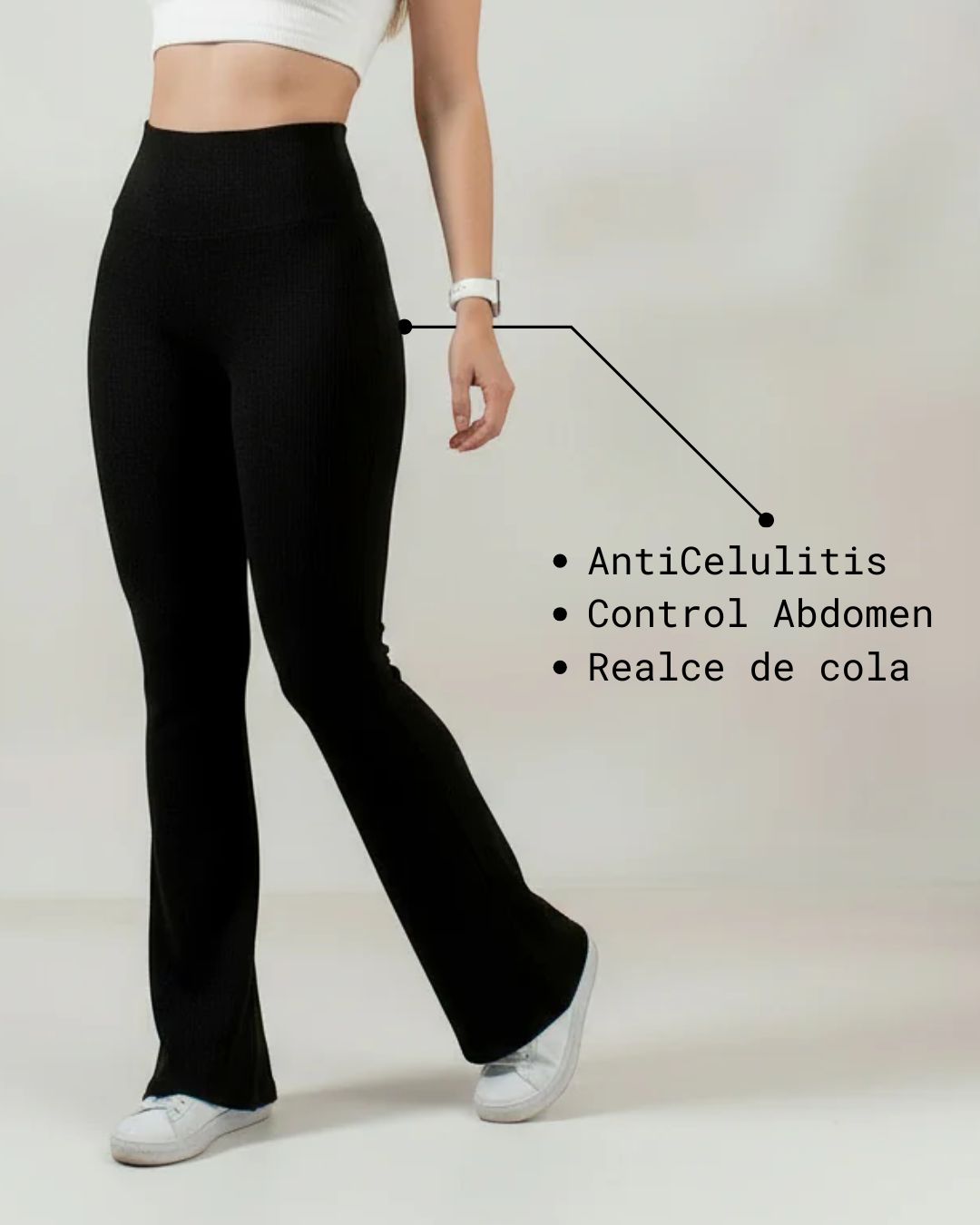 ✔ Pantalón campana con control abdomen, efecto anticelulitis y antitransparencia, con refuerzo en la entrepierna para máxima comodidad.