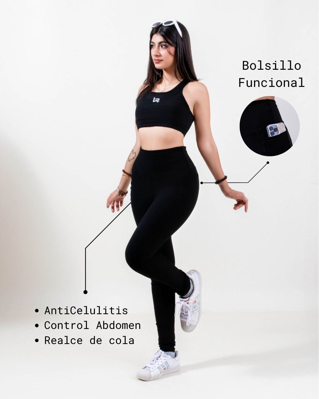 ✔ Leggins bota tubo con control abdomen, efecto anticelulitis y antitransparencia + 2 bolsillos laterales prácticos.