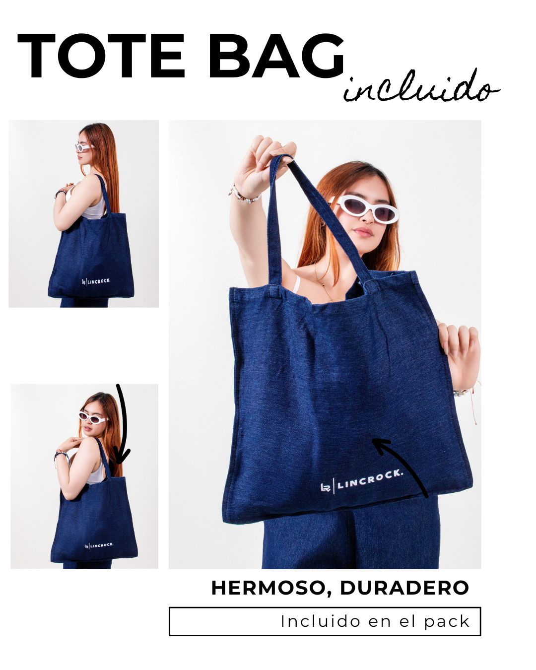Nota: La tote bag está cubierta únicamente por defectos de confección o costura, no por desgaste natural o mal uso.
