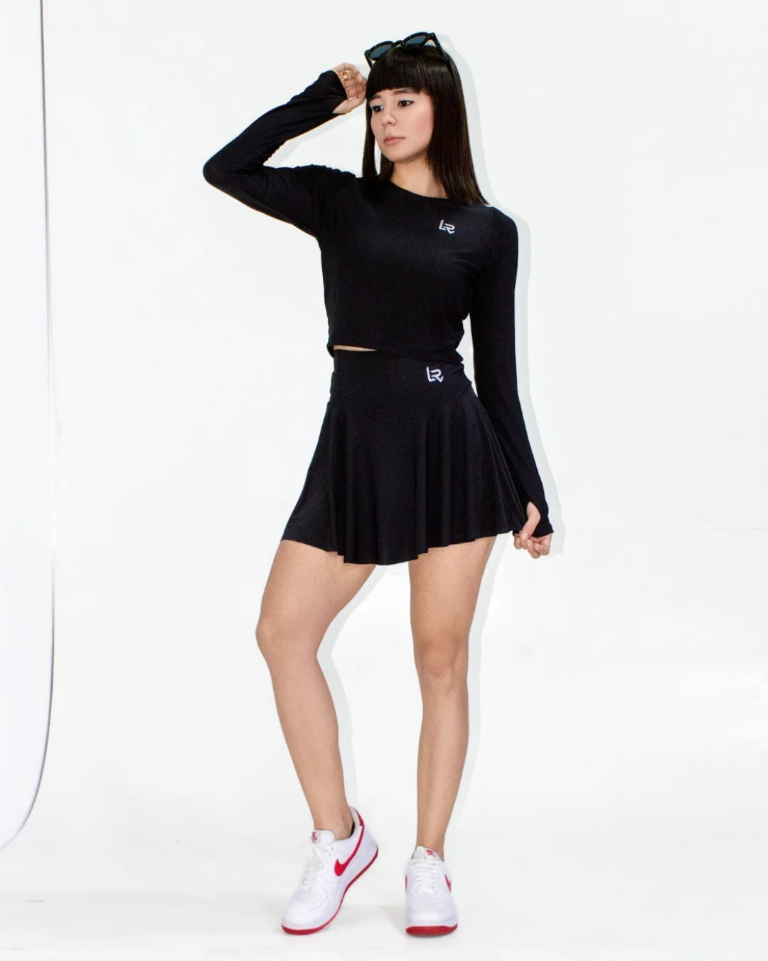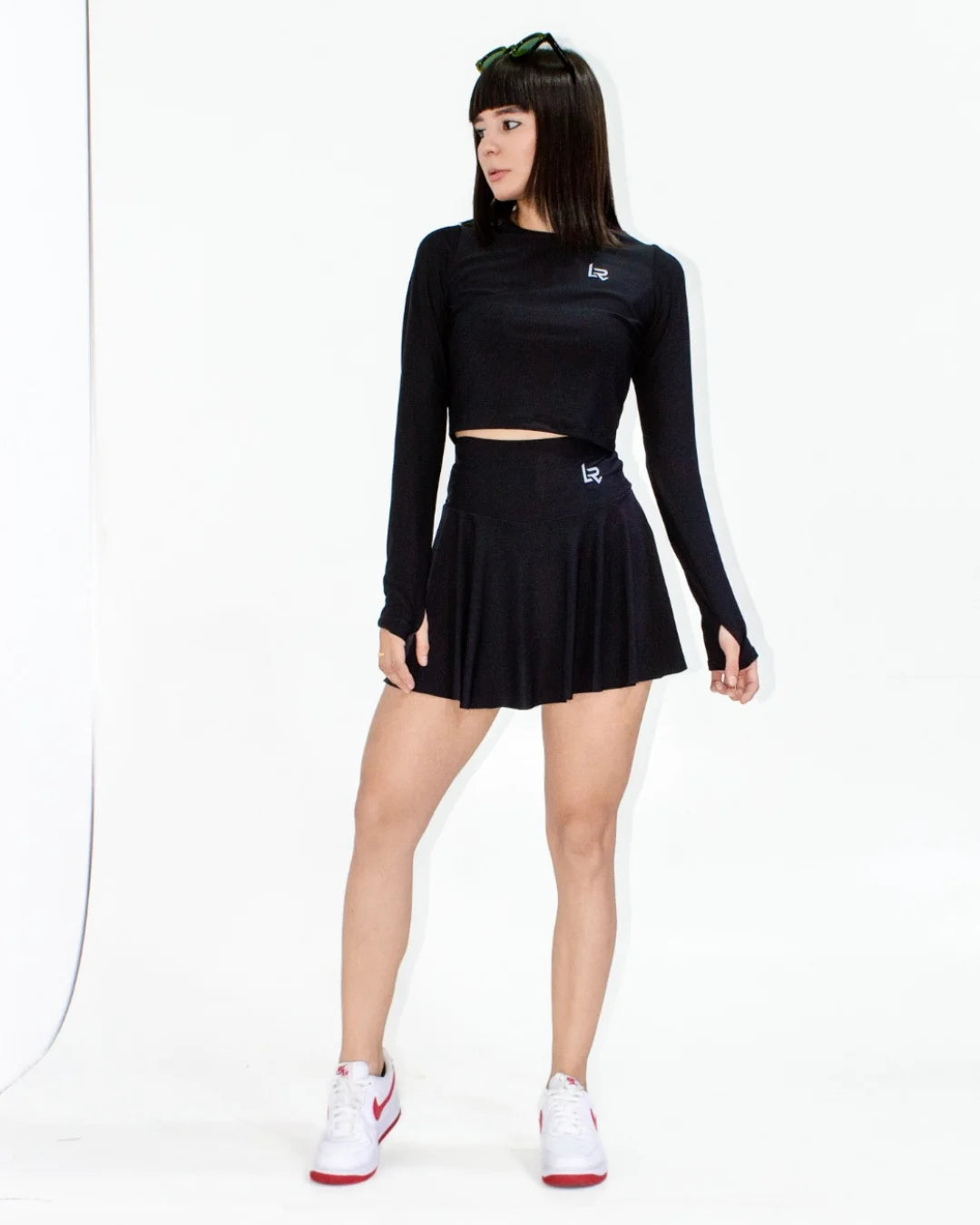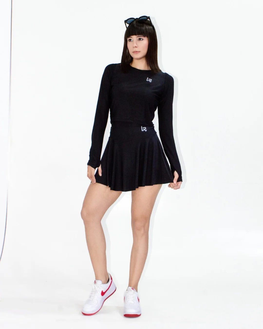 ✨ Comodidad garantizada: El top de manga larga y la falda short están hechos con materiales que gestionan eficazmente el sudor, mantienen tu piel seca y previenen malos olores.