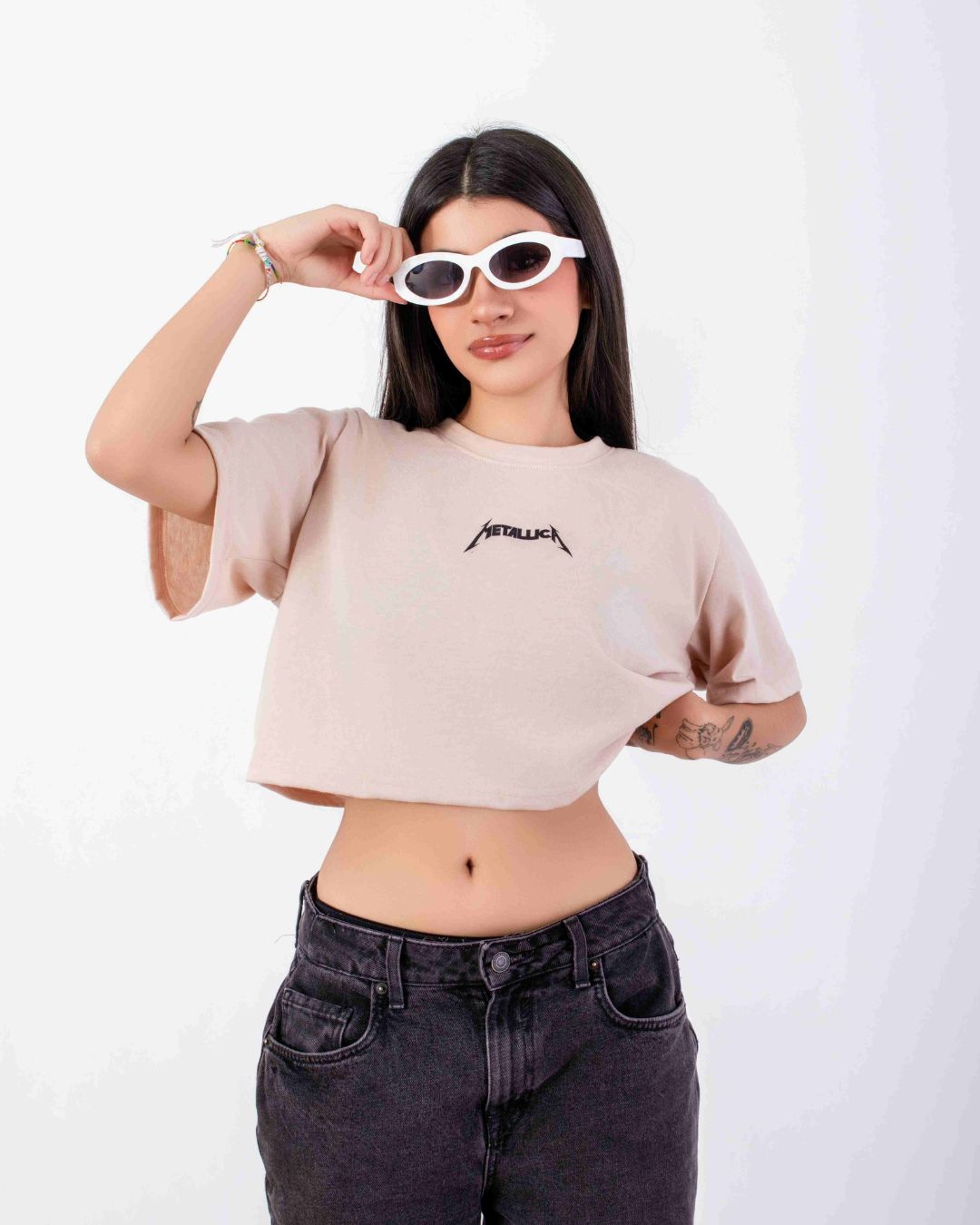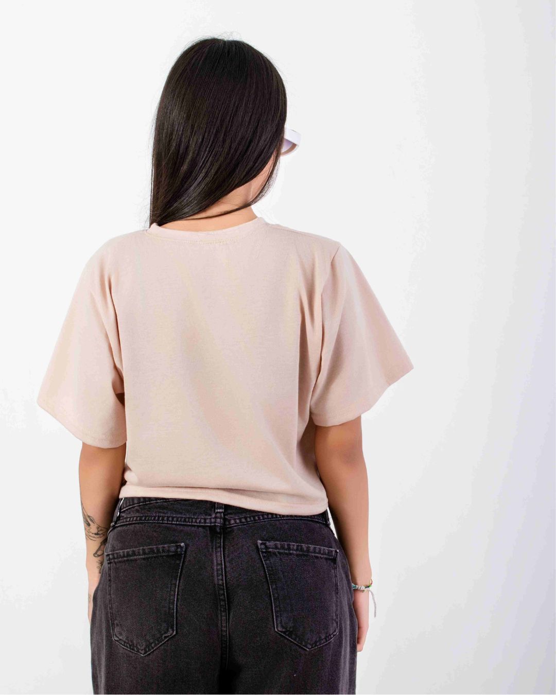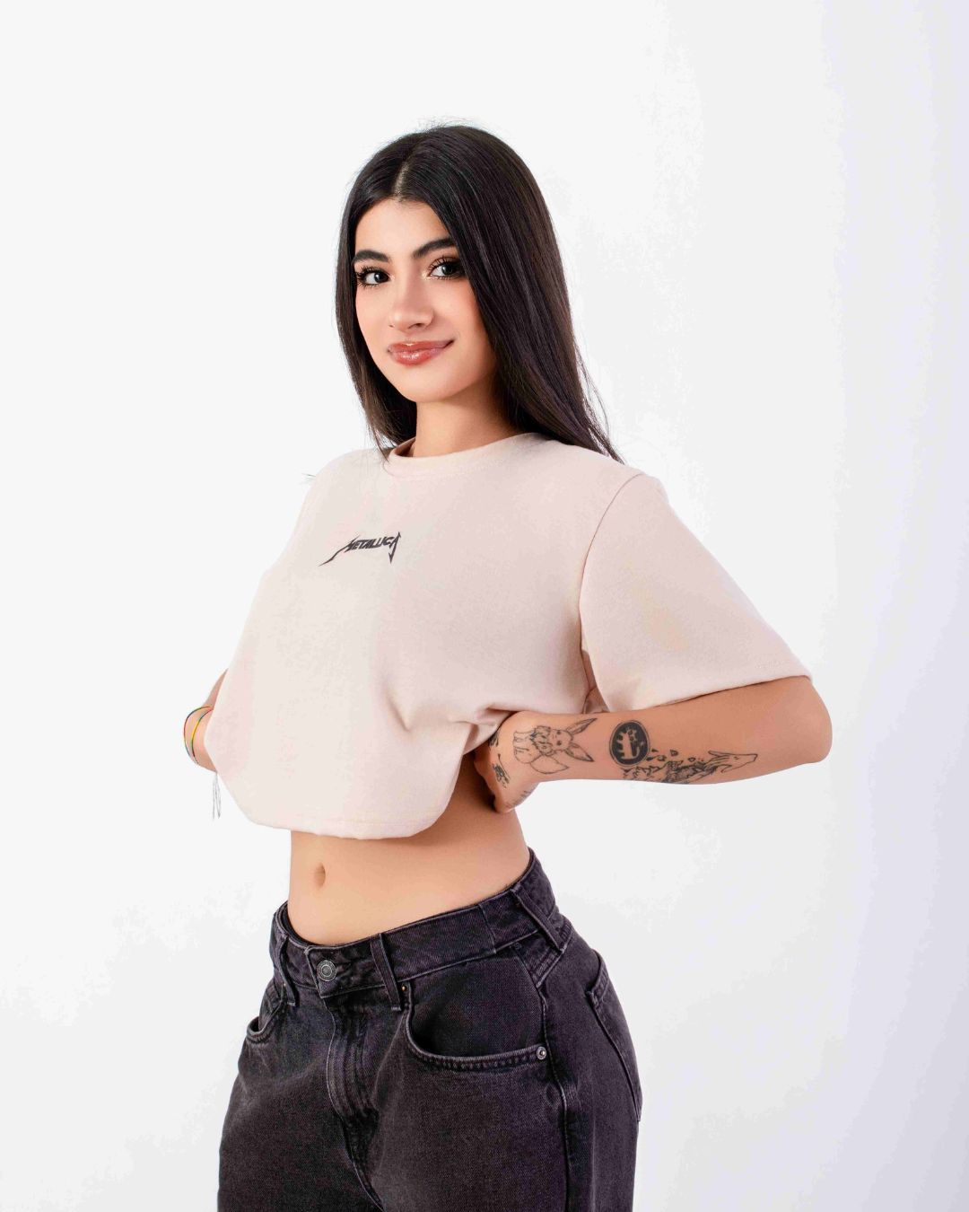 Este elegante croptop para dama está confeccionado en una suave mezcla de polialgodón peinado, asegurando no solo una textura agradable al tacto sino también una durabilidad excepcional. Su diseño en blanco prístino se complementa a la perfección con un estampado negro que captura la esencia fresca y ligera de la serie, creando un contraste visualmente atractivo que no pasará desapercibido.